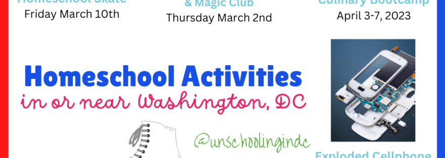 Need some fun ideas for your children? Live in or near Washington, DC? Check out these events. Which ones(s) do you think your family will enjoy? If you attend, let us know how they were. 🙂 Woodridge Pokemon & Magic ClubThursday March 2nd, 2023 @ 4:00pm - 6:00pmWoodridge Neighborhood Library (DC Public Library)Ages: 5-12 &… Continue reading Events for Homeschoolers – March 2023